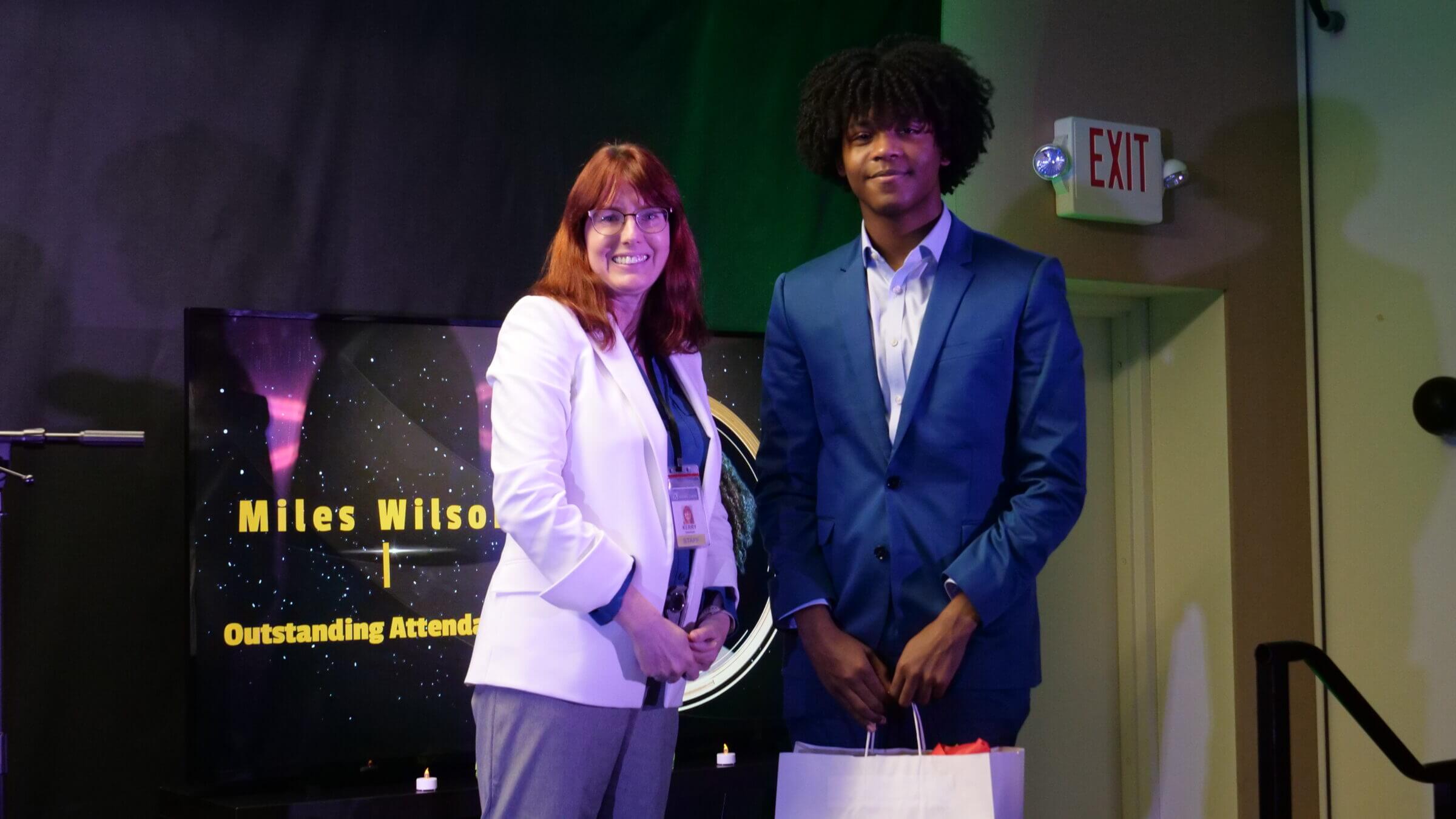 The celebration also included a special moment to recognize Miles Wilson with the outstanding attendance award. This annual honor illustrates a YES teen’s exemplary record of attendance and their dedication to the program, which occurs over multiple Saturday sessions at the Taylor Building throughout the school year, as well as busy summers with community outreach efforts like Summertime Science, Pop-Up Science events, and more.