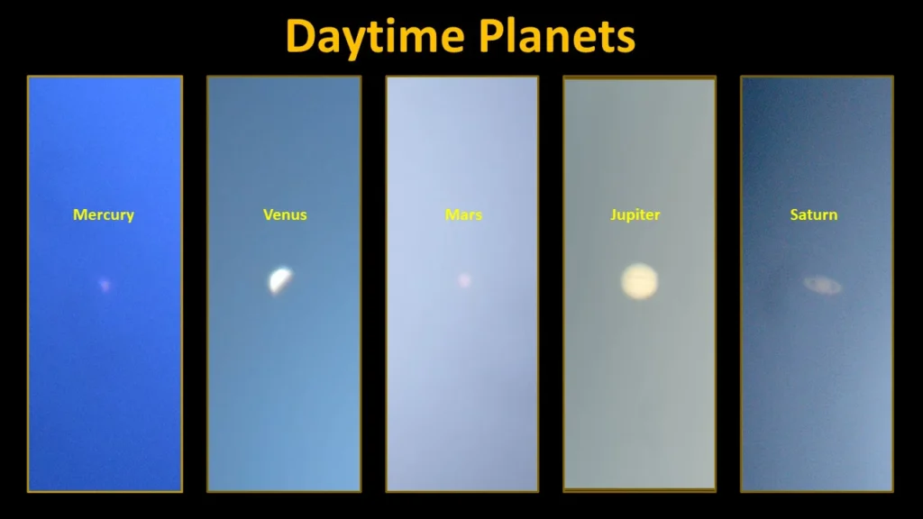 Image shows daytime telescope view of the five naked eye planets. Image credit: Eric Gustafson