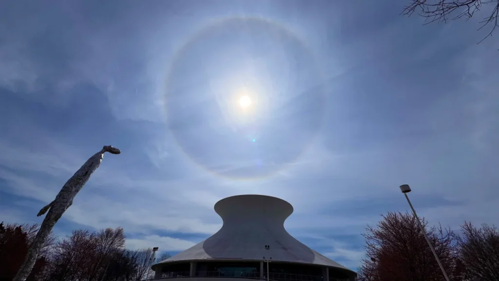 Image showing sundogs and a circumzenithal arc at the James S. McDonnell Planetarium. Image credit: Eric Gustafson