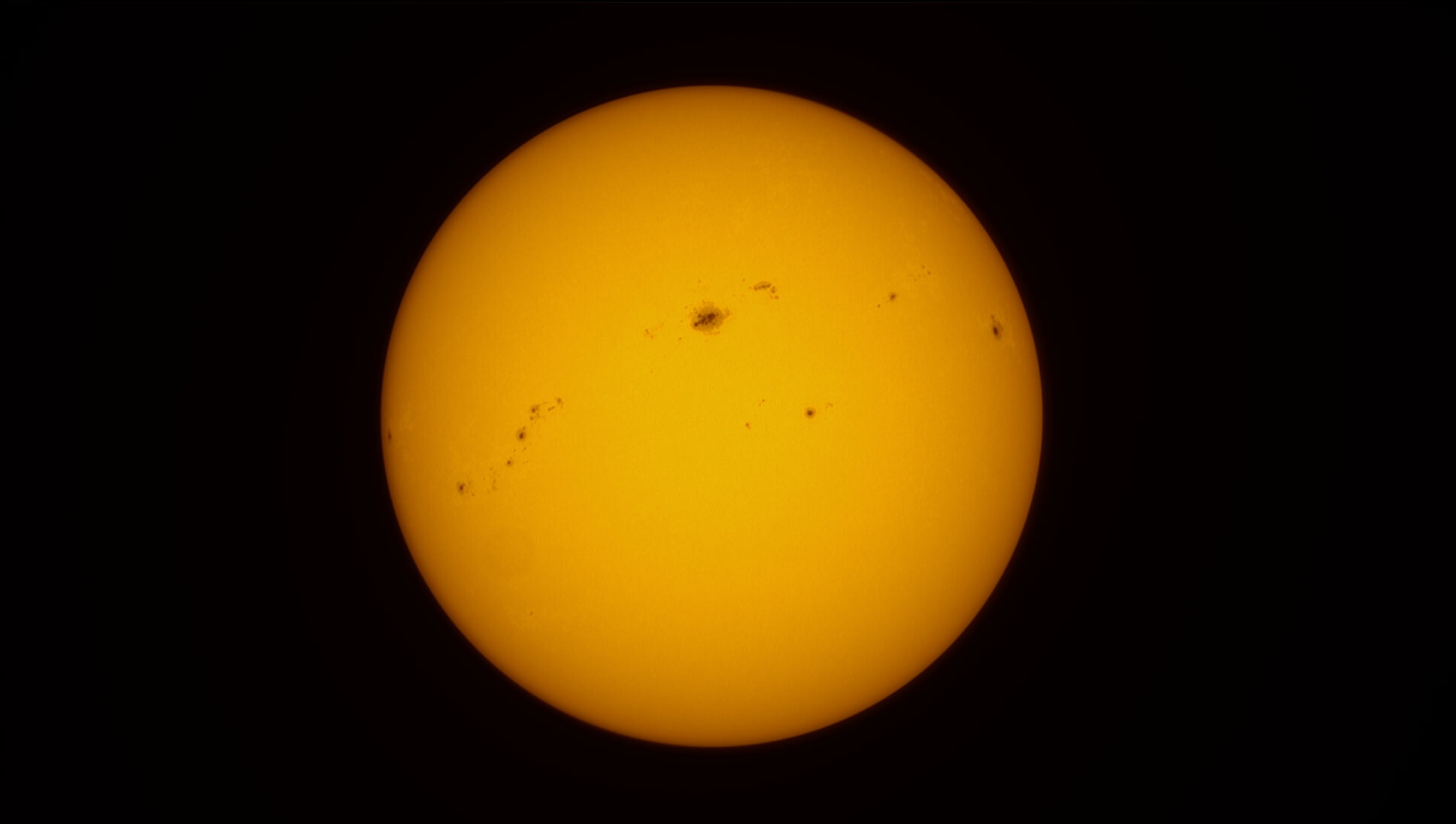 White light image of the Sun taken on August 9, 2024, In the image you can see several complex sunspot regions. Image credit: Randy Harrison from River Bend Astronomy Club and Lookin’ Up Optics.