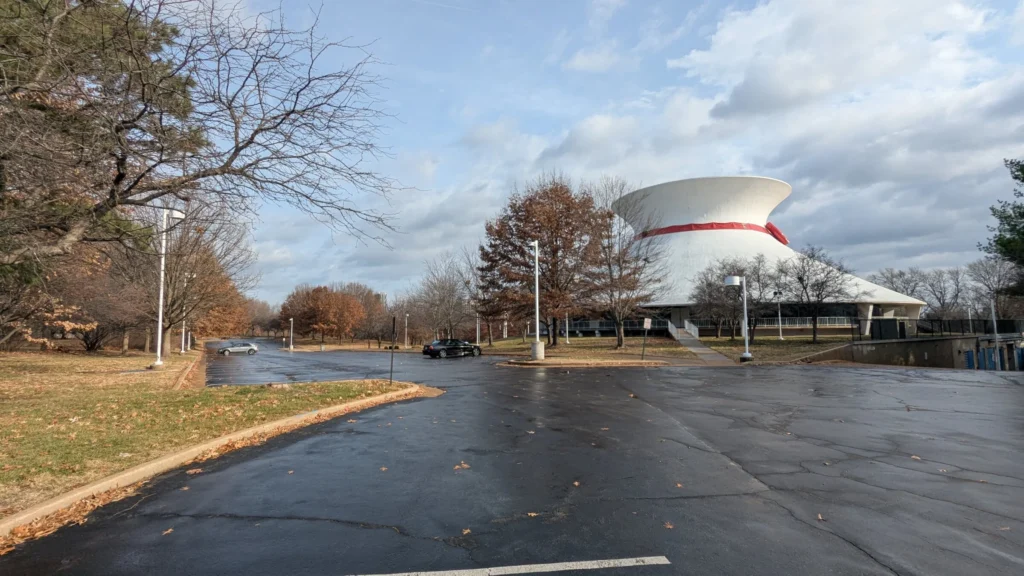 Image showing dew outside the James S. McDonnell Planetarium. Image credit: Eric Gustafson