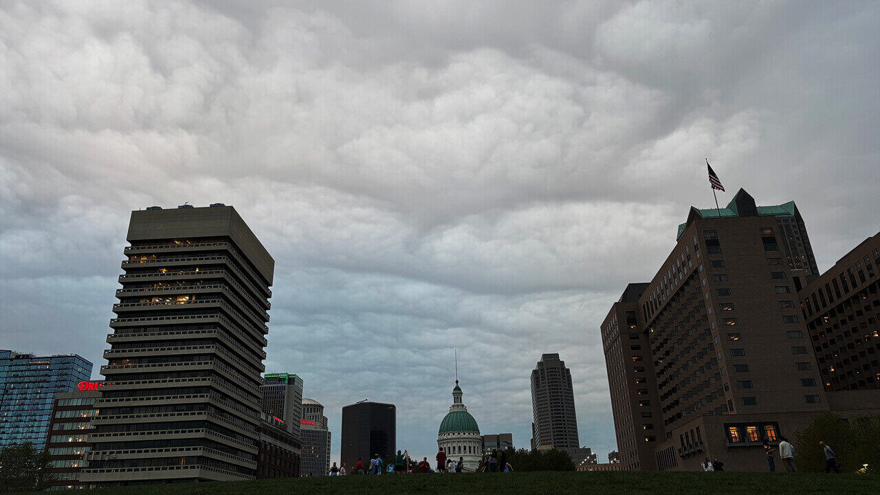 Image showing gravity waves and turbulence caused by asperitas clouds in downtown St Louis October 10, 2025. Image credit: Alex Guajardo