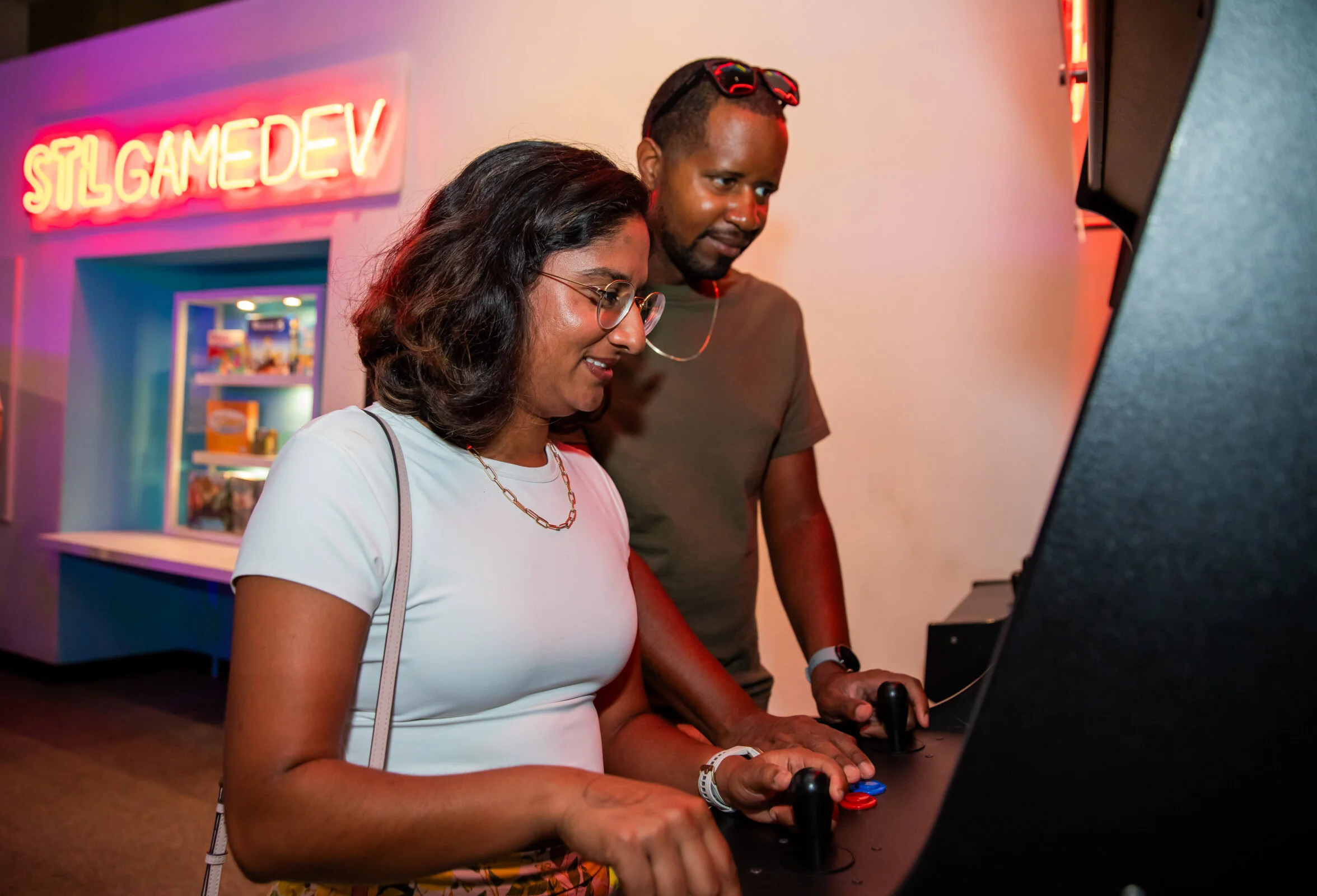 Play a couple of classic arcade games and try out some local creations in this free arcade.