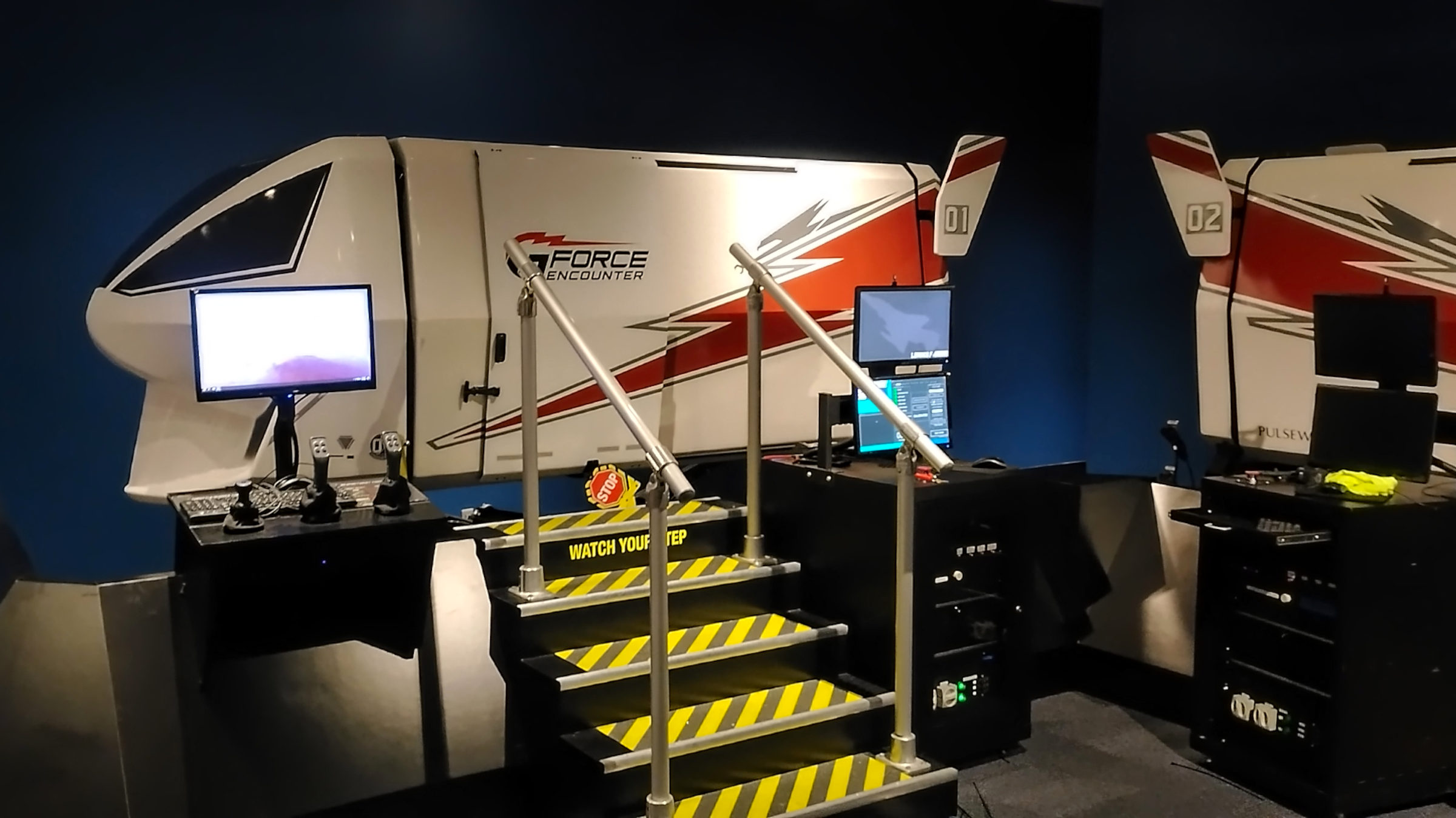 Experience Flight Simulators are located in the Planetarium tunnel.