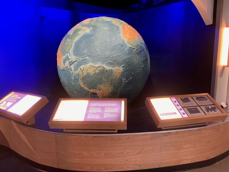 Learn about geospatial data and St. Louis’ rich geospatial history in the Planetarium’s newest exhibit: As the World Turns. Located in the Planetarium’s lobby, the exhibit is anchored by the 8-foot-tall Rand McNally® Geophysical Earth Globe. Guests can interact with near-real-time satellite images and explore applications of geospatial data. Then, explore mapping projections and how the Aeronautical Chart and Information Center (ACIC), one of the National Geospatial Agency’s (NGA) legacy organizations, mapped the Earth and moon to aid NASA in the Space Race and humanity’s “giant leap.”