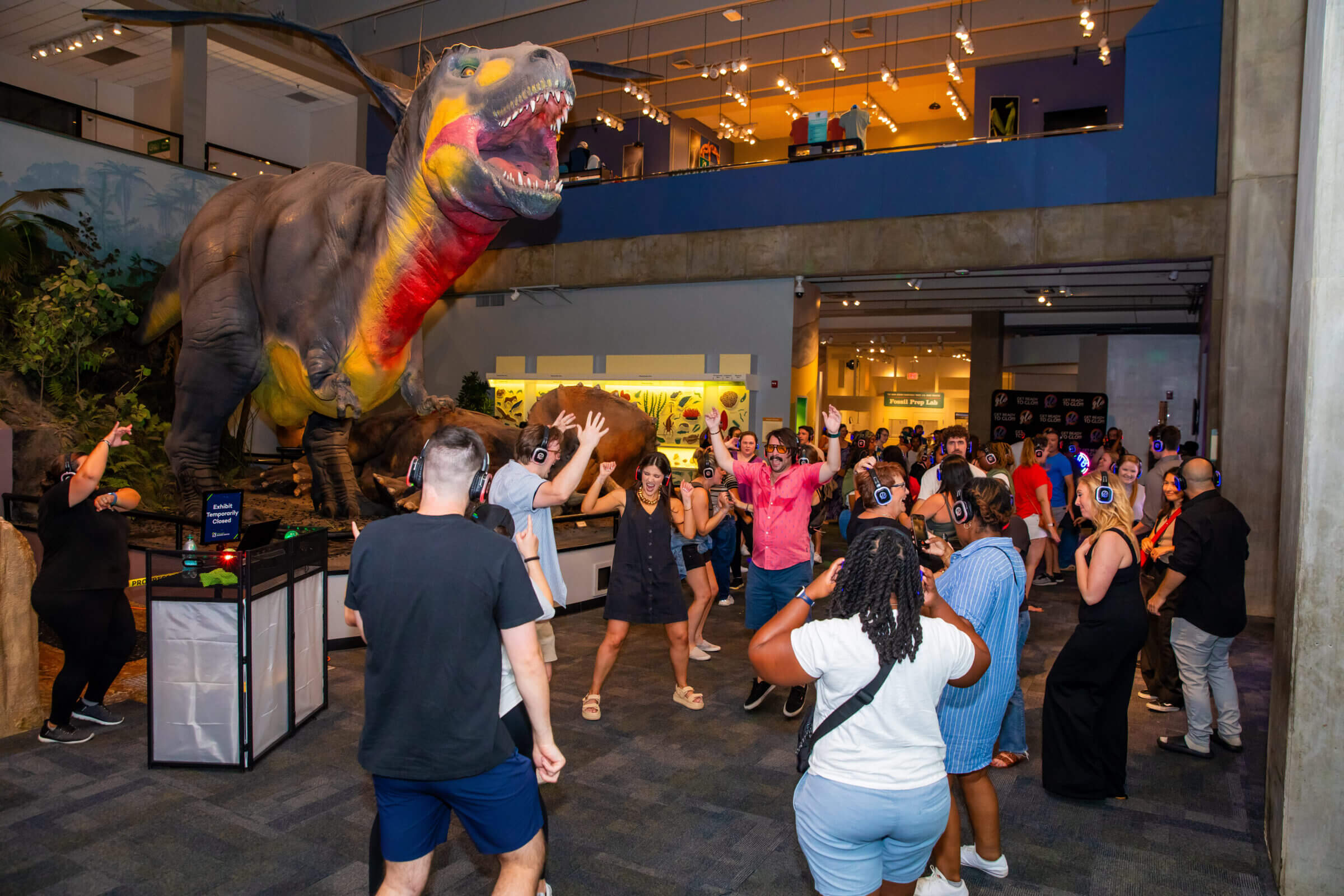 Anyone looking to get amped up could take part in a Quantum Disco. A STEM-tinged play on the “silent disco”, this experience saw attendees put on headphones to choose from different genres of music playing simultaneously, then dance the night away under the watchful eye of the Science Center’s iconic T. rex.