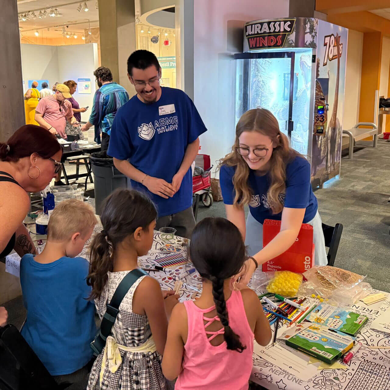 On the Science Center’s Lower Level, May Hall hosted activities from FIRST Robotics, where attendees could program and even drive robots. In the T-Rex Room, guests could explore neuroscience with WashU’s Amazing Brain Carnival. Guests could meet members of the 501st and Rebel Legions to discuss costume design, learn about fermentation with StilL 630, or discover how molecule chains control electricity flow with researchers from the University of Missouri. Encouraged to tap into their own creativity and bright ideas, guests could create items like origami art, stamped metal bracelets and keychains, layered kazoos, catapults, and even LED flashlights. Using real world examples of the minerals found in the video game Minecraft, WashU Earth, Environmental and Planetary Sciences allowed guests to touch and learn about the properties of each mineral to see what makes them unique and useful. Several artists and builders from MADE Makerspace came to demonstrate and cover STEM concepts involved in foam carving and wood burning art, pewter casting, 3D printing, and more. Guests could also try their slapshot and stick-handling skills with the St. Louis Blues Street Team—all while learning about the science of hockey ice and equipment. And the St. Louis CITY SC Street Team engaged attendees, talking about the science of soccer.