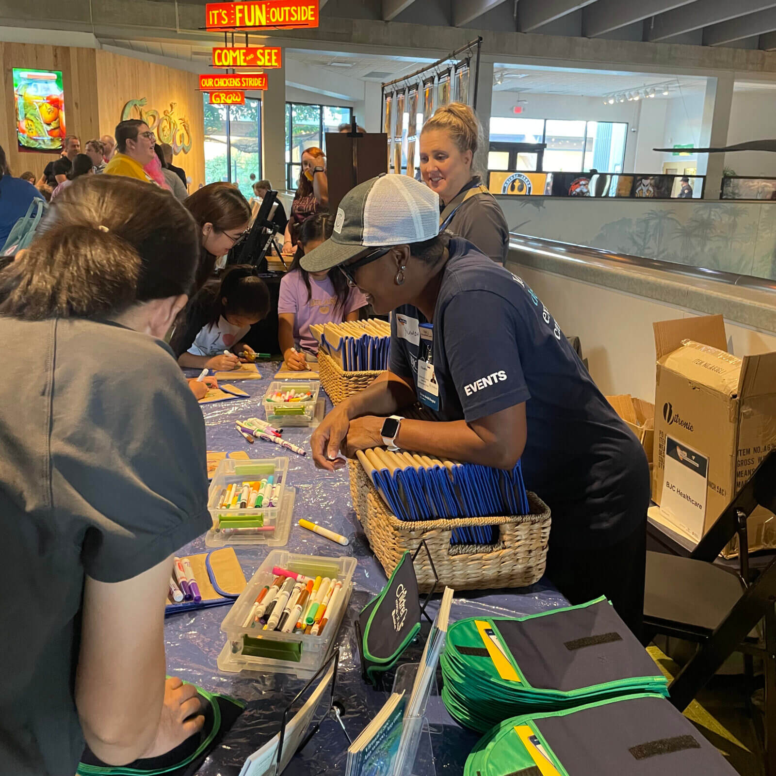 The Science Center’s quarterly SciFest expos demonstrate how STEM impacts so many aspects of our daily lives, as well as how much STEM truly happens in St. Louisans’ own backyards. Events like Play and Creativity Expo allow guests to meet and learn alongside the people who are creating, problem solving, and innovating in big ways, as well as give the companies and organizations who deal with STEM every day the opportunity to share more about the work they’re doing. SciFest sponsors BJC HealthCare and Spry Digital took their involvement beyond philanthropic support with team members on site to connect with the community. Guests could try out a colorful nutrition activity with exhibitors from BJC or complete a bingo challenge on user experience design with Spry Digital.