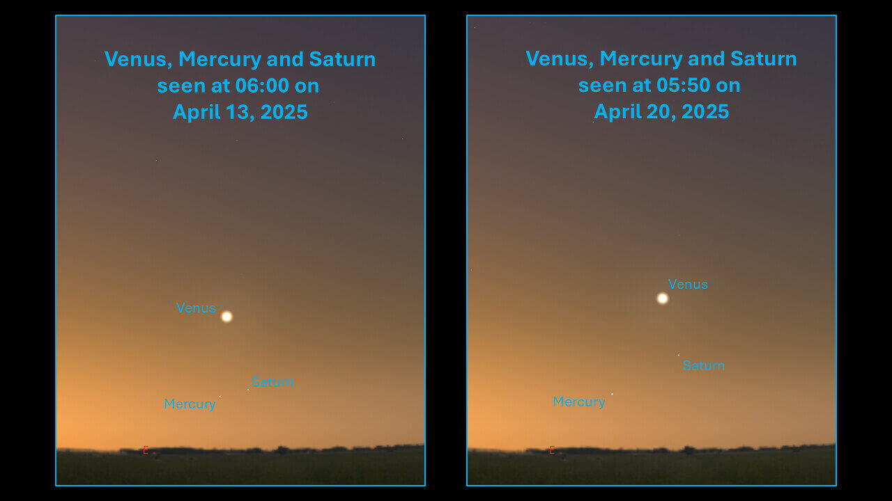 The planets in question are Mercury, Venus and Saturn. Only Venus will be easy to find, however, Saturn is improving, and Mercury makes a brief visit to the eastern sky for the next week and a half.
