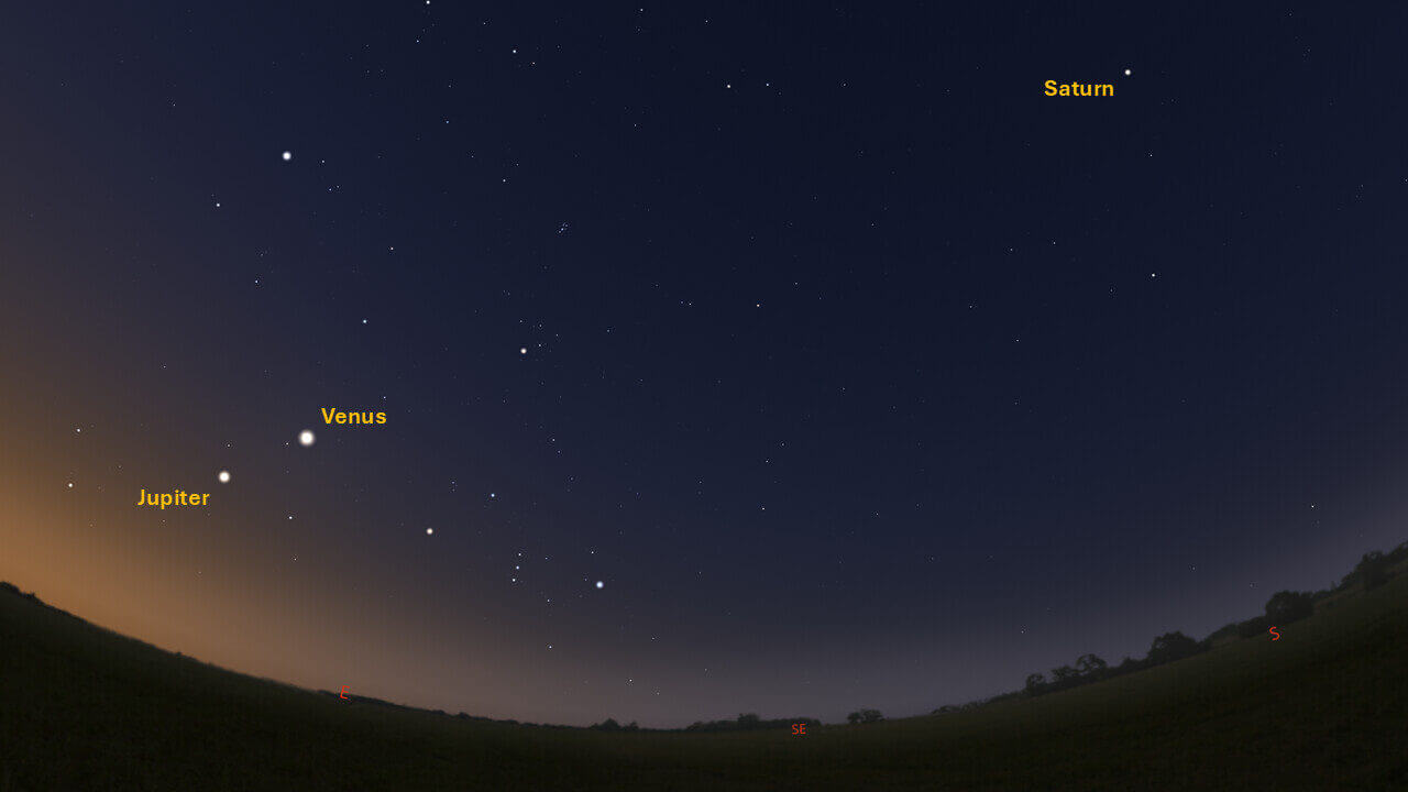 This week, Jupiter rises around 04:48. Look for Jupiter in the east around 05:15. On August 12, Jupiter will rise around 03:19 making it much easier to find before the Sun rises. On August 12, 2025, Jupiter and Venus will exhibit a conjunction during which they will appear only 51 arcminutes apart.