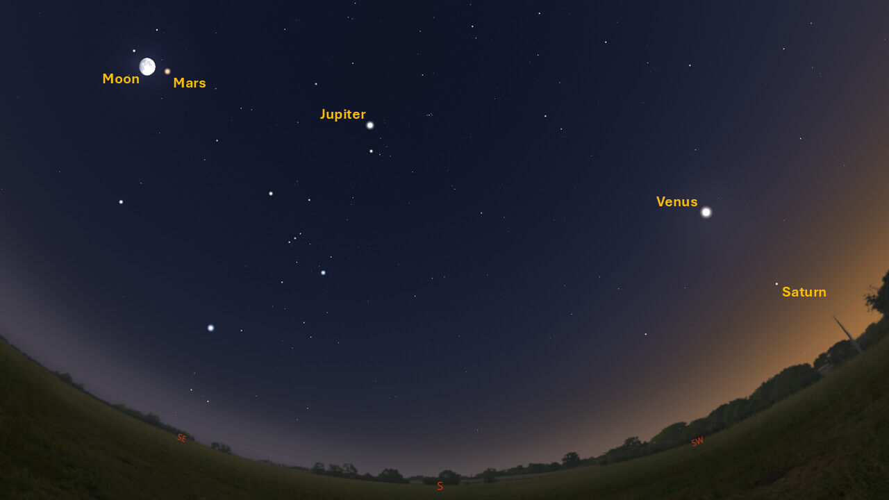 Not long after sunset this week, three bright planets will be visible. Venus will be found in the southwest, Jupiter overhead and Mars will be in the east. Saturn will be found near Venus in the southwest, but it will become increasingly difficult to find near the end of February.