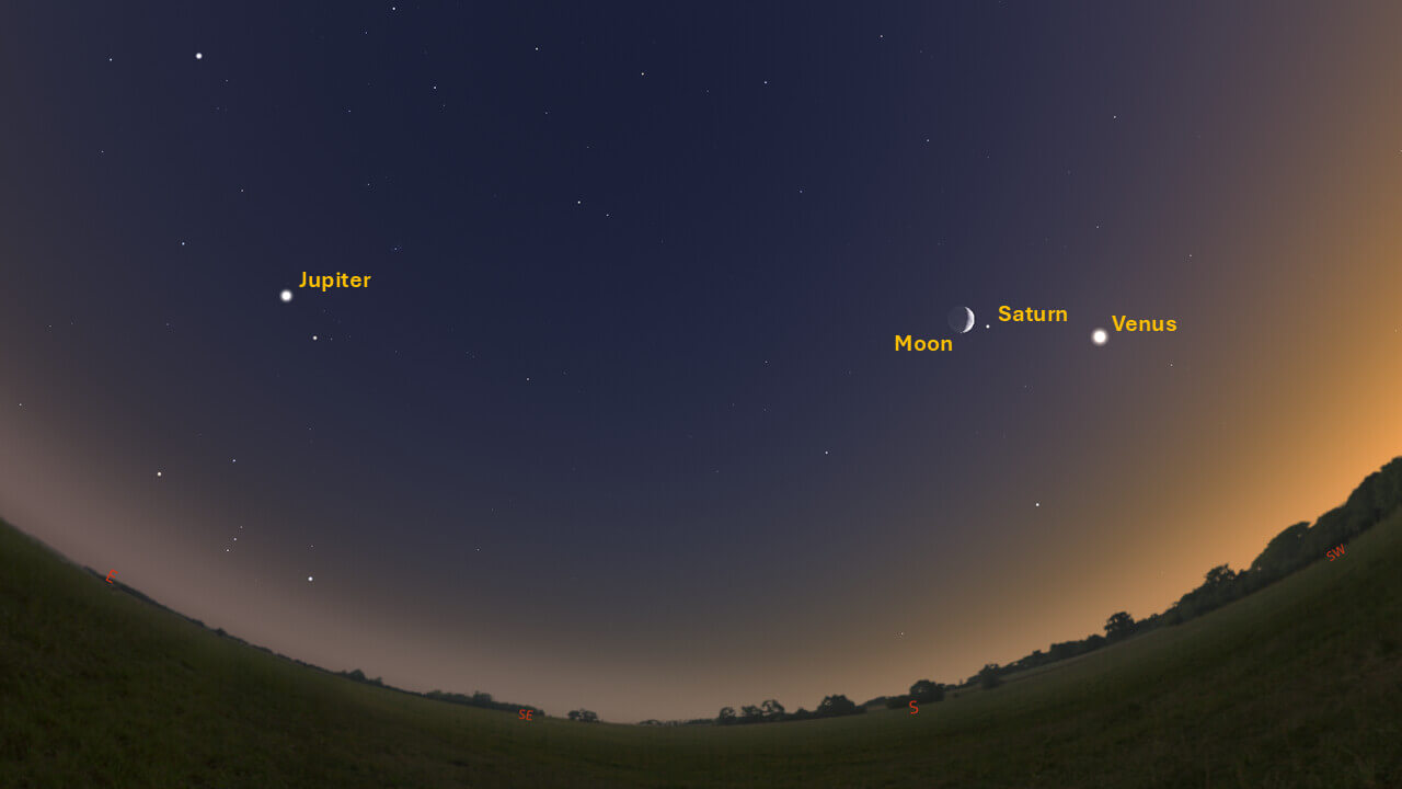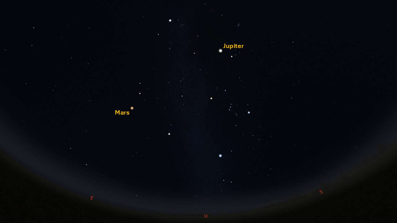 Looking southeast at 5:30 pm on January 4, 2025. Credit: Stellarium, EG