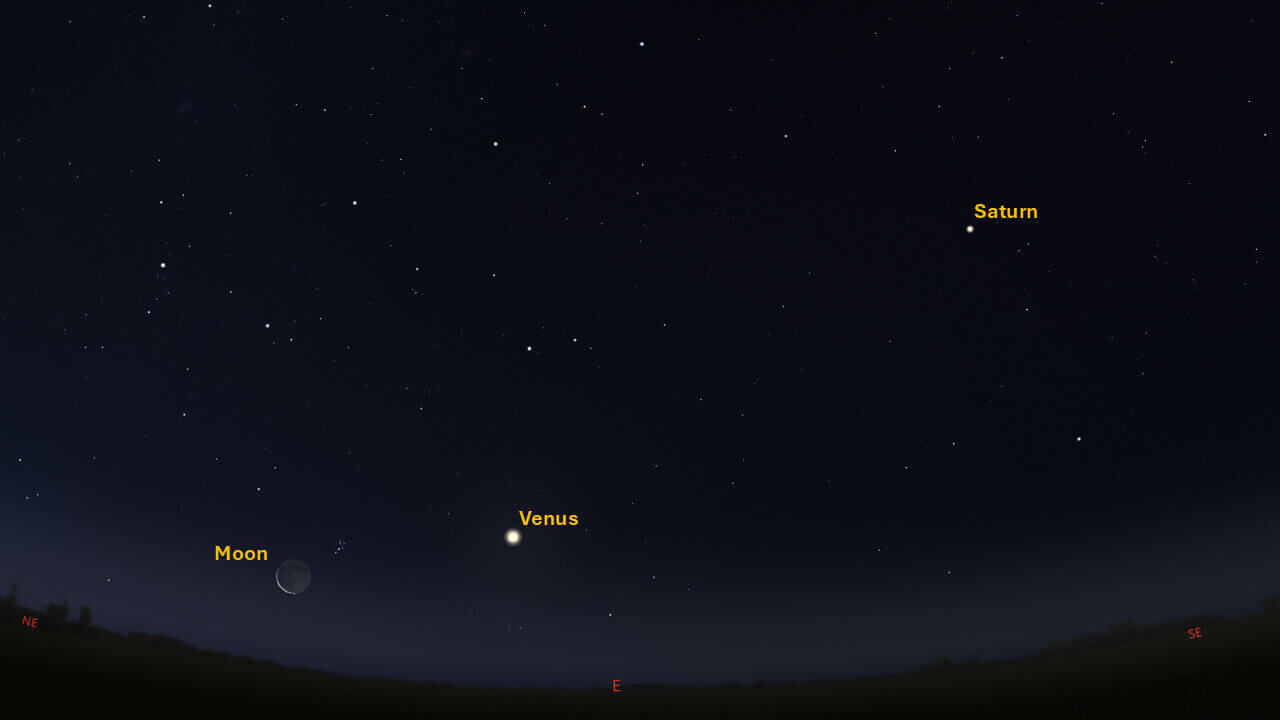 Saturn can be found in the east before sunrise. Saturn rises around 01:11 this week. The planet should be high enough to see by 02:00. If you missed the last Titan shadow transit, the next two occur on July 2 and 18, 2025.