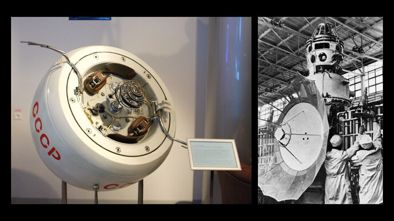 The image on the right shows Soviet engineers assembling the Venera 8 spacecraft. Image credit: Lavochkin / Roscosmos.
