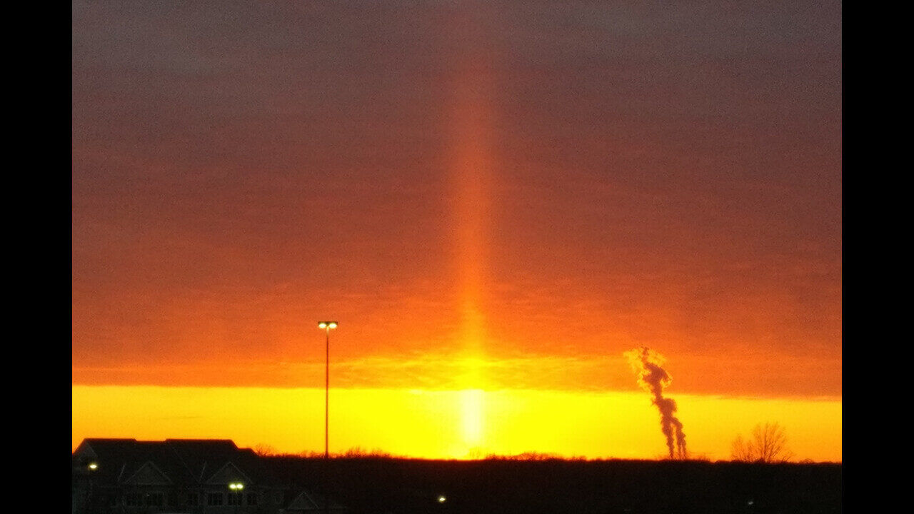 Sun pillar seen as the Sun was setting. Image credit: Eric Gustafson
