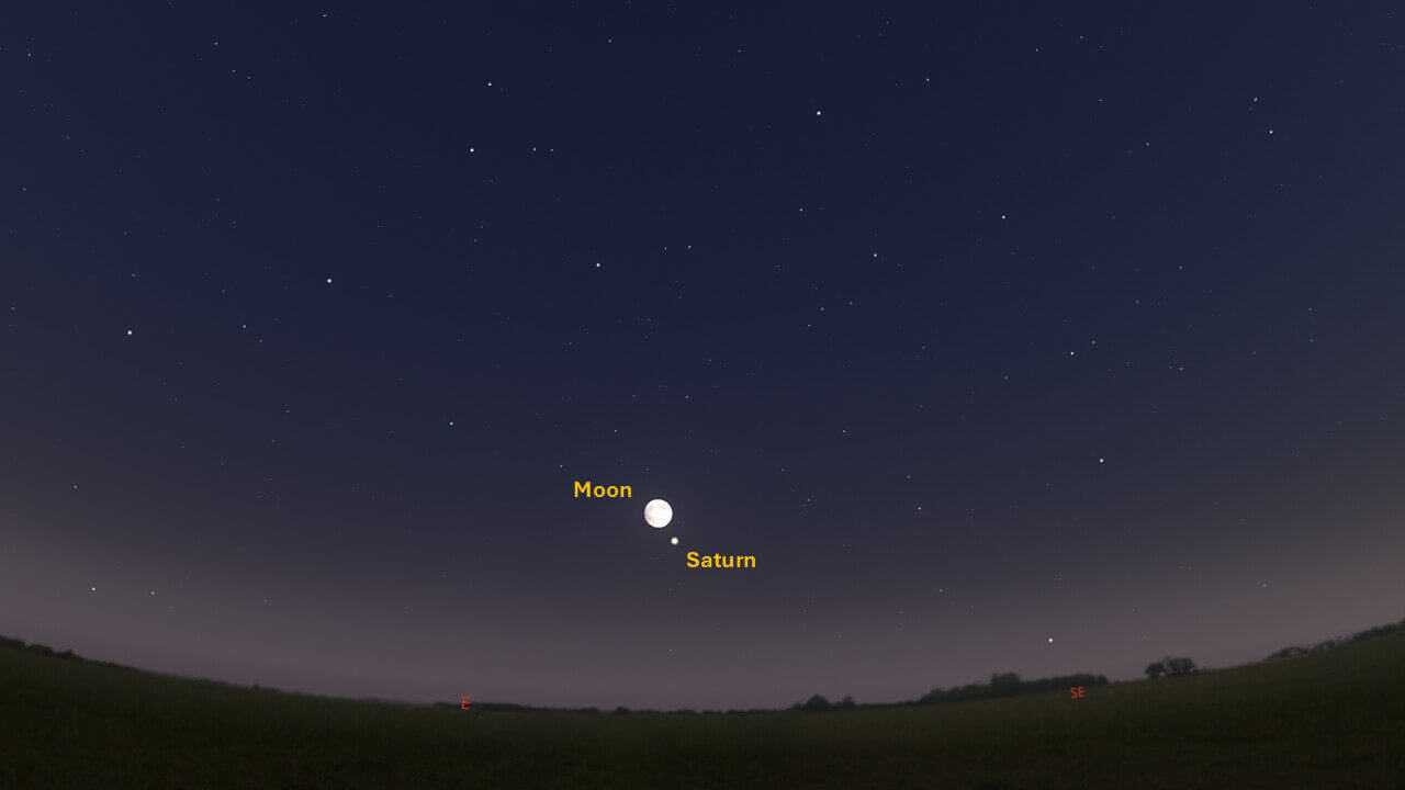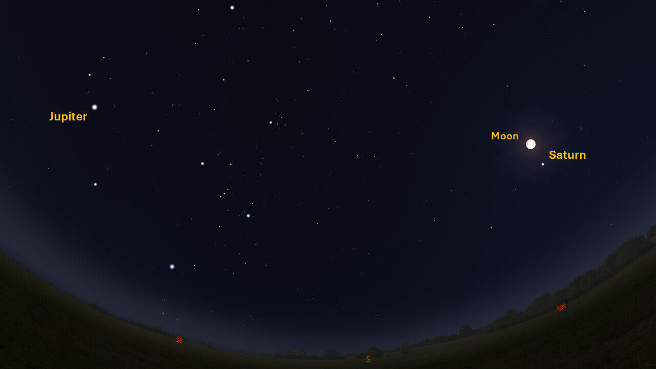 This week, Jupiter rises around 00:28. Look for Jupiter in the east around 02:00. Jupiter reaches opposition on January 10, 2026. As we continue towards this date, Jupiter will continue to rise earlier each week.