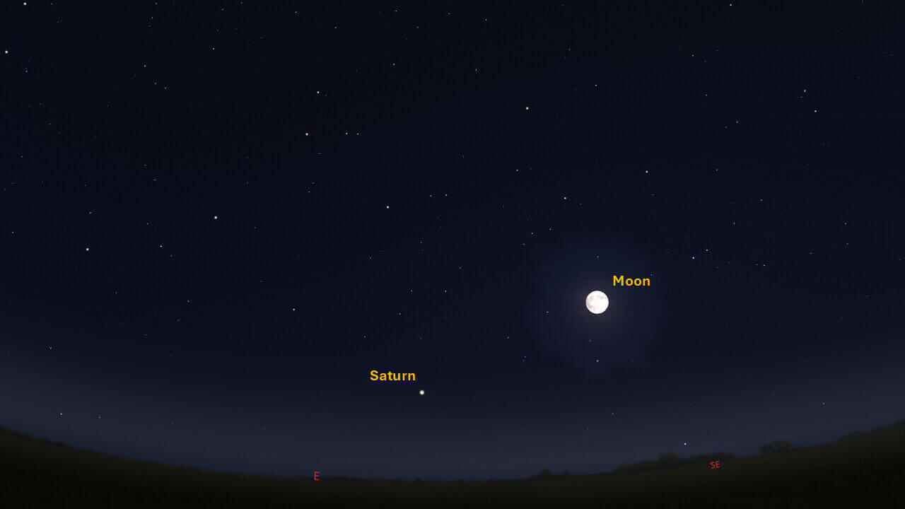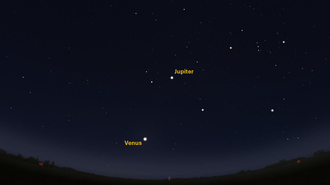 This week, Jupiter rises around 01:59. Look for Jupiter in the east around 03:00. Jupiter reaches opposition on January 10, 2026. As we continue towards this date, Jupiter will continue to rise earlier each week.