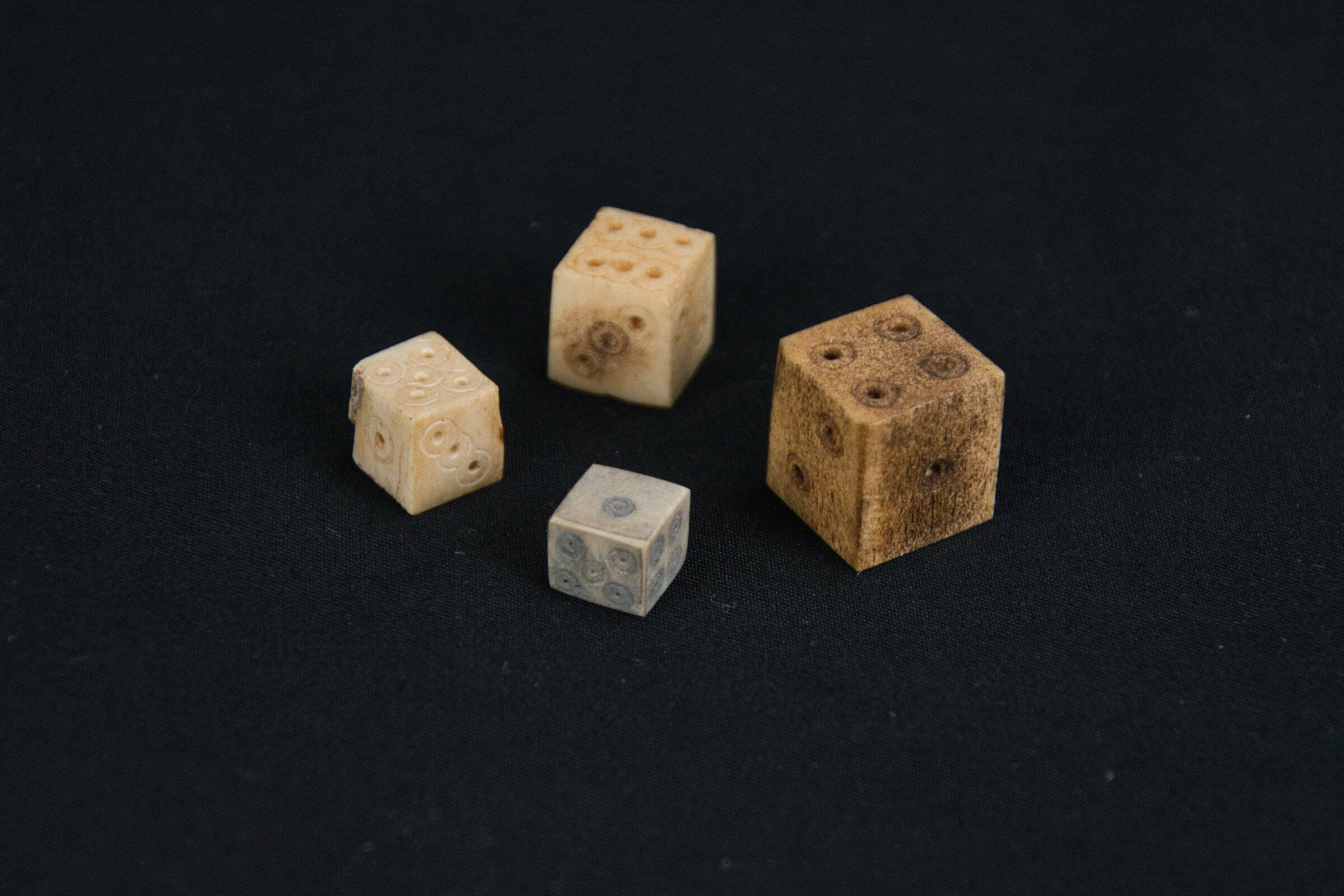 Ancient Romans loved the competitive dice games of Tesserae and Tali. They were also big gamblers. Dice were commonly carved from wood or bone, like these here, and thrown from a cup or small box. Gaming was a favorite pastime at banquets and other social occasions.